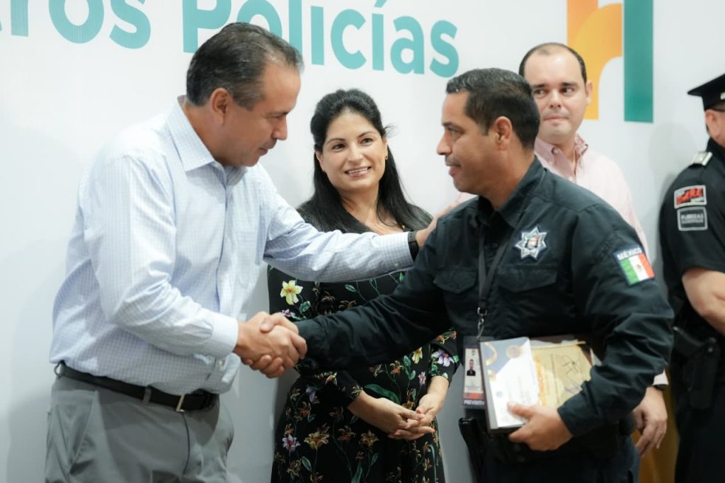 Durante la entrega de reconocimientos a diez elementos que se distinguieron por su desempeño durante los meses de junio y julio y se distinguieron a 16 más de la corporación, Toño Astiazarán destacó que han crecido en equipamiento con patrullas y nuevos elementos para mejorar y reducir los tiempos de atención en llamadas de emergencia.