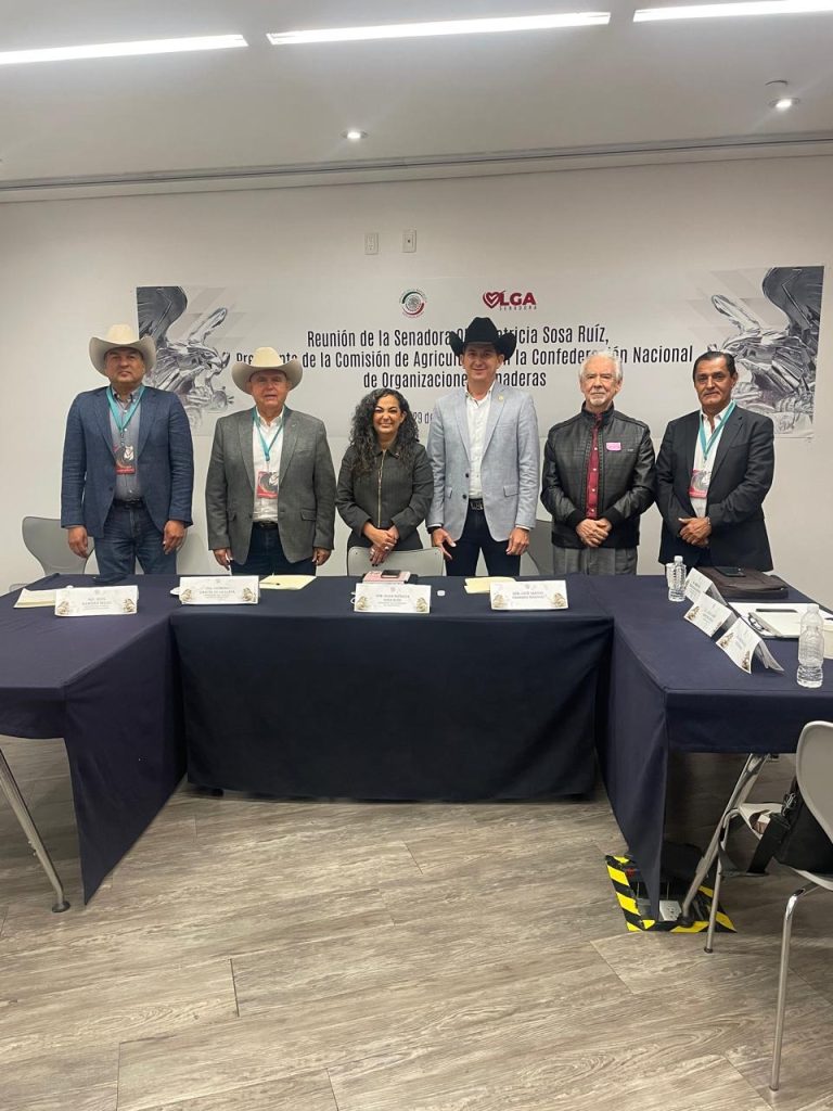 (Foto) Reunión con los presidentes de las Comisiones de Agricultura, Olga Patricia Sosa Ruiz y de Ganadería, Sabino Herrera Dagdug del Senado de la República. Asisten el presidente de la Confederación Nacional de Organizaciones Ganaderas, Ing. Homero García de la Llata, el Tesorero de dicha Confederación, Ing. Noel Ramírez, y el asesor del CNOG, Juan Jaime Sánchez Meza.