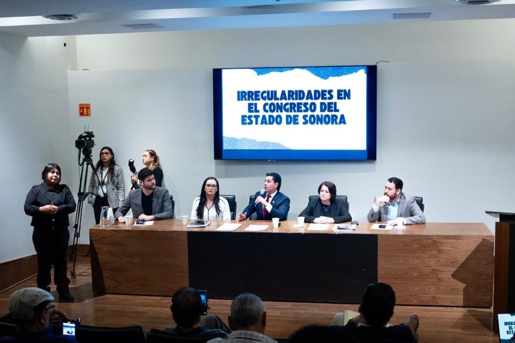 Hermosillo, Sonora, 26 de febrero de 2026. – Los diputados del PRI, Iris Fernanda Sánchez Chiu y Emeterio Ochoa Bazúa, junto con legisladores de oposición como Gabriela Félix, Manuel, Scott de Movimiento Ciudadano y Pablo Arenivar del PAN, informaron que interpusieron denuncias ante distintas instancias por presuntas irregularidades en el funcionamiento interno del Congreso del Estado.